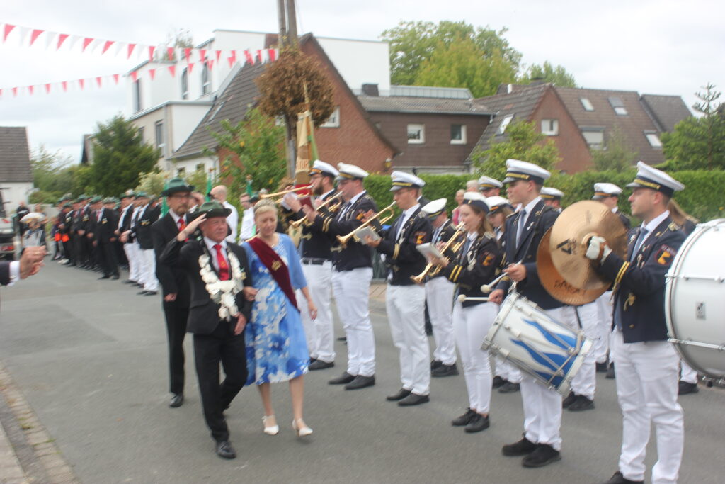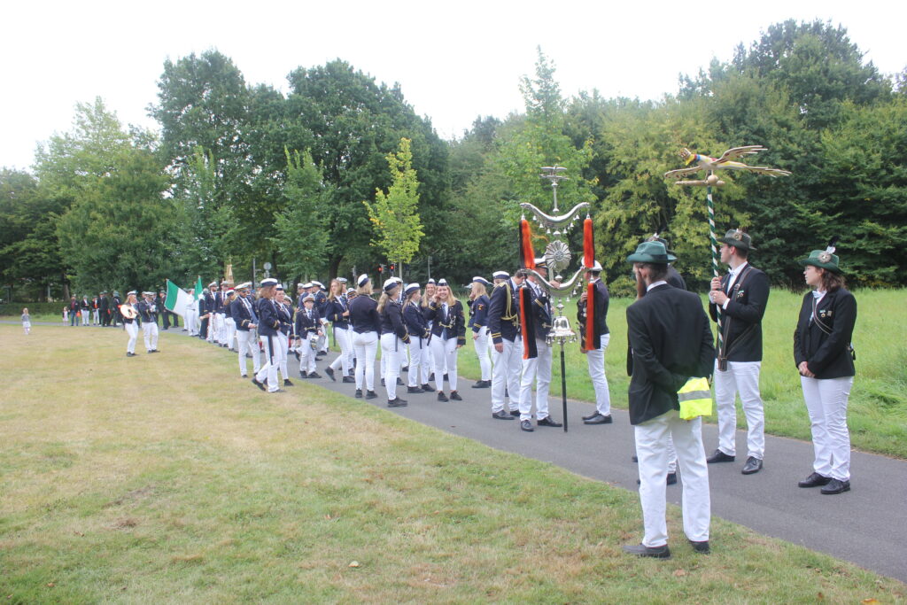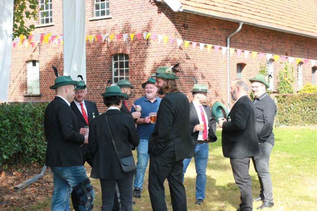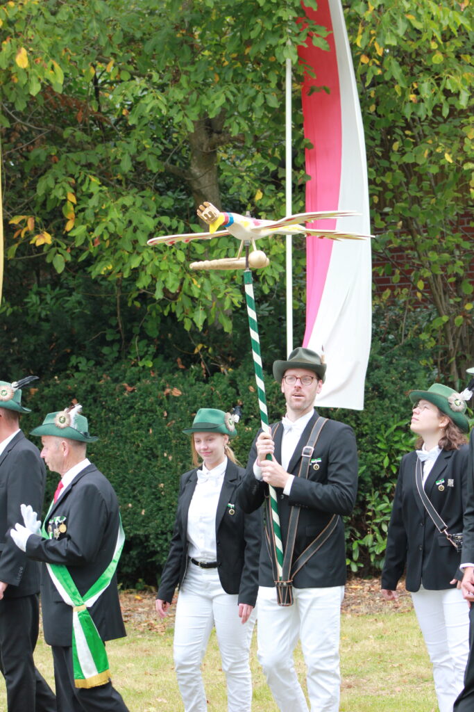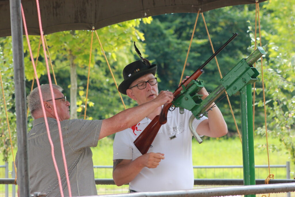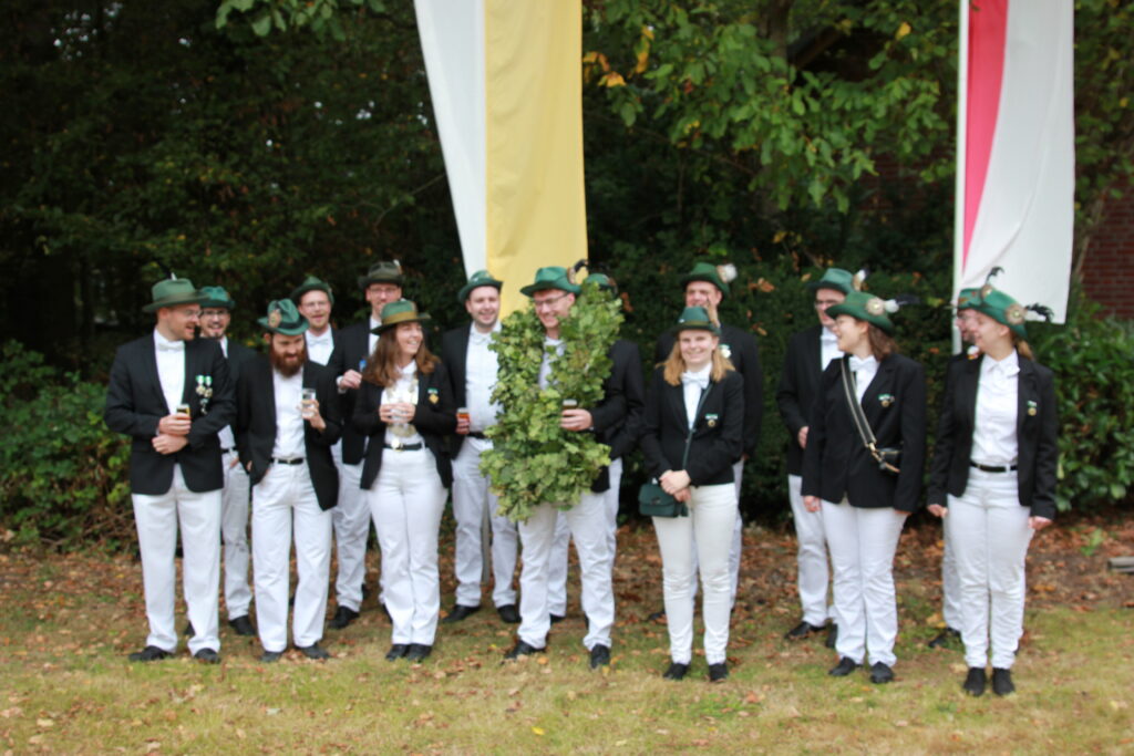 Bereits am Freitag fiel in diesem Jahr der Startschuss für die Schießwettbewerbe. Den Auftakt bildete das Pokal- und Medaillenschießen, gefolgt von der traditionellen Stangenkrönung gemeinsam mit unseren Freunden vom Schützenverein Gievenbeck.